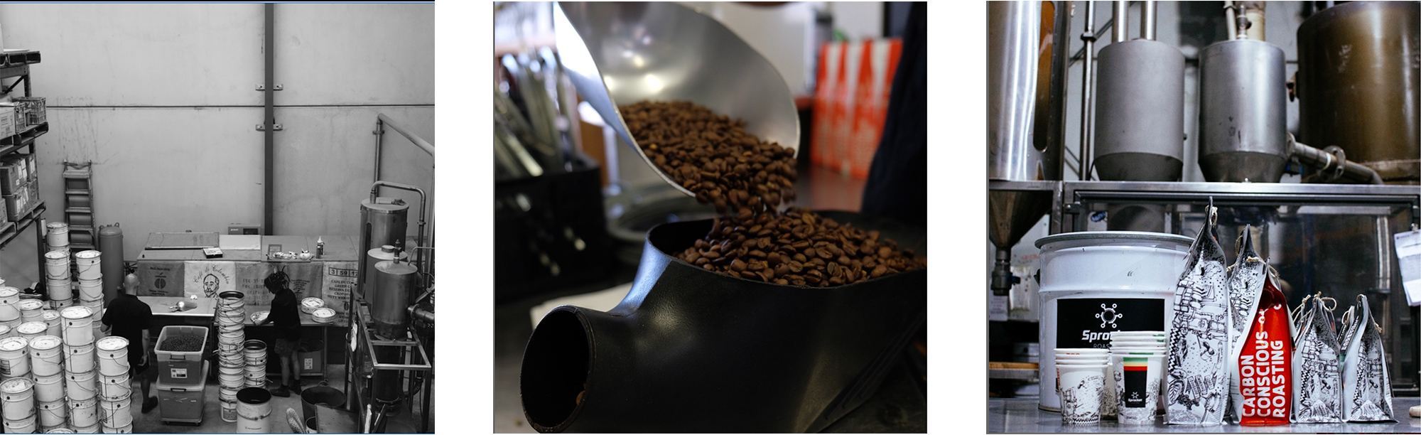 Do you want to know a dirty little secret of the coffee roasting industry? We'll spill the beans. Conventional commercial coffee roasters release heaps of nasty emissions into the atmosphere. They burn fossil fuels, producing hazardous gases like carbon dioxide and smoke containing carbon monoxide, air toxins, irritant volatile organic compounds, and nitrogen oxide. That's a considerable list of negatives, all for the privilege of your morning coffee cup. And so, because we couldn't imagine giving up coffee consumption, we worked hard to explore alternative options. There had to be a sustainable method of roasting green coffee beans to optimal flavour that makes us and the biosphere happy. Sprocket Roasters was soon born.